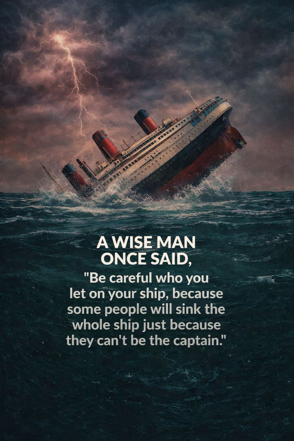 Laev sümboliseerib siin ütluses elu, suhet, perekonda, meeskonda, ettevõtet või mis tahes ühist teekonda sinu elus.
